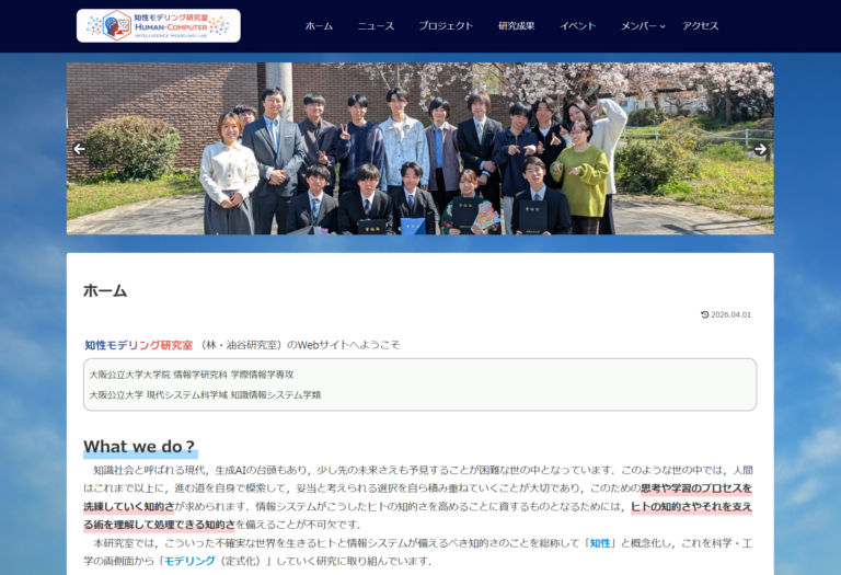 20262026年度より,林・油谷研究室(通称・知性モデリング研究室)を立ち上げました.